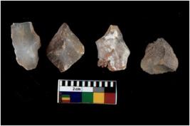 | Description / विवरण | There are n 4 utilized flake cores. There are multi directional irregular scar pattern on them. Three have flat base and one has blunted edge. |