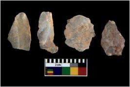 | Description / विवरण | There are n 4 utilized flake cores. There are multi directional irregular scar pattern on them. Two are tapering at one end and two have blunted edges. |