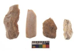 | Description / विवरण | There are n 4 of utilized worked cores and show irregular scar pattern on both dorsal and ventral side. Two are elongated in shape. |