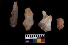 | Description / विवरण | There are n 4 cores; there are multi directional irregular scar pattern on them. Some of them are tapering at one end. 2 quartz and 2 chalcedony |