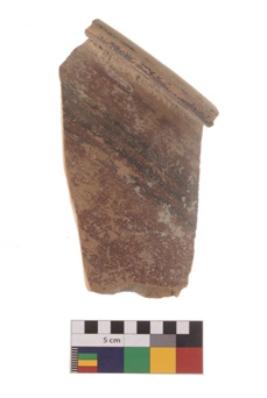 | Description / विवरण | Specimen of black on red ware with traces of decorative geometric Four lines painting. |