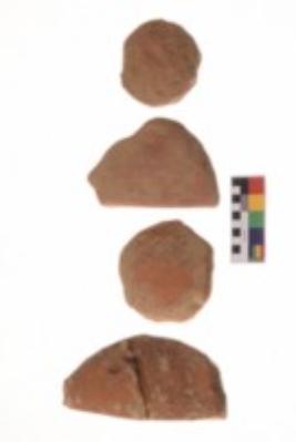| Description / विवरण | Specimens of disc of Red ware, all are irregular at the periphery. |