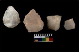 | Description / विवरण | Specimen of a cores with several broad fluted marks, the reverse bulb and platform can be seen. |