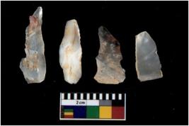 | Description / विवरण | There are n 4 utilized flake cores. There are multi directional irregular scar pattern on them. One is tapering at one end and three have sharp edges. |
