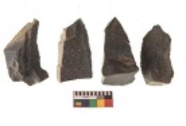 | Description / विवरण | There are n 4 utilized flakes. There are multi directional irregular scar pattern on both dorsal and ventral face of the flakes. One is tapering at one end and three have sharp edges. |