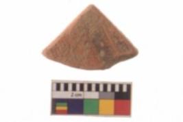 | Description / विवरण | Specimen of one fourth portion of a disc of Black-on-Red ware; it shows traces of two horizontal bands. |