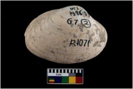 | Description / विवरण | Specimen of a large bivalve marine shell with ground edge. Probably used as spoon. |