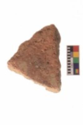 | Description / विवरण | Specimen of a gamesmen of Red ware; it is uneven at the edges. |