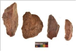 | Description / विवरण | There are n 4 flakes tool; there are large flakes with sides trimmed, Marks of secondary flaking are present on the both the faces. The dorsal is relatively flat. One is pointed functional top. |