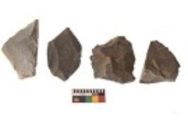 | Description / विवरण | There are n 4 utilized flakes. There are multi directional irregular scar pattern on both dorsal and ventral face of the flakes. Two have sharp edges and two have blunted edges. |