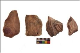 | Description / विवरण | Specimen of a cores with several broad fluted marks. |