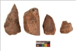 | Description / विवरण | There are n 4 flakes tool; there are large flakes with sides trimmed, Marks of secondary flaking are present on the both the faces. The dorsal is relatively flat. One is pointed functional top. |
