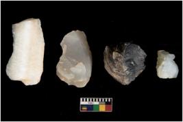 | Description / विवरण | There are n 4 flake cores. All of them are fully fluted flake cores without any trace of crested ridge flakes. Some are tapering at one end. Some have flat base and few have sharp edges. |