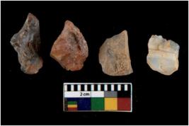 | Description / विवरण | There are n 4 utilized flake cores. There are multi directional irregular scar pattern on them. Two are tapering at one end and two have blunted edges. |