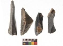 | Description / विवरण | There are n 4 utilized flakes. There are multi directional irregular scar pattern on both dorsal and ventral face of the flakes. One is tapering at one end and three have sharp edges. |
