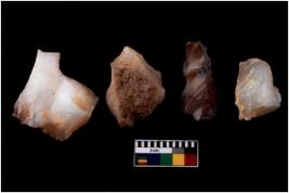 | Description / विवरण | There are n 4 cores; there are multi directional irregular scar pattern on them. The reverse bulb and platform can be seen. 1 quartz and 3 chalcedony |