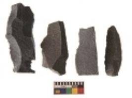 | Description / विवरण | There are n 4 utilized flakes. There are multi directional irregular scar pattern on both dorsal and ventral face of the flakes. Three are tapering at one end and one has sharp edge. |