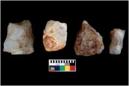 | Description / विवरण | There are n 4 flake cores. All of them are fully fluted flake cores without any trace of crested ridge flakes. Some have flat base. Some have sharp edges while some have blunted edges. |