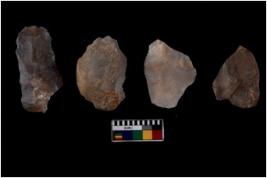 | Description / विवरण | There are n 4 of utilized worked cores and show multidirectional irregular scar pattern on both dorsal and ventral sides. One has a flat base. |