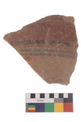 | Description / विवरण | Specimen of black on red ware with decorative geometric Three parallel lines painting. |