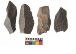 | Description / विवरण | There are n 4 utilized flakes. There are multi directional irregular scar pattern on both dorsal and ventral face of the flakes. Two are tapering at one end and two have sharp edges. |