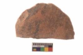 | Description / विवरण | Specimen of disc of Black-on-Red ware showing traces of three horizontal bands. |