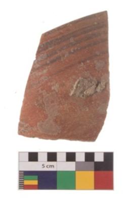 | Description / विवरण | Specimen of black on red ware with decorative geometric Four parallel lines painting. |