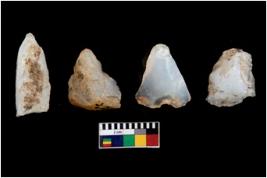 | Description / विवरण | There are n 4 flake cores. All of them are fully fluted flake cores without any trace of crested ridge flakes. Some have flat base. Some have sharp edges while some have blunted edges. |