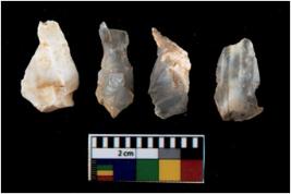 | Description / विवरण | There are n 4 utilized flake cores. There are multi directional irregular scar pattern on them. One is tapering at one end and three have sharp edges. |