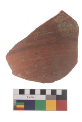 | Description / विवरण | Specimen of black on red ware with decorative geometric Four parallel lines painting. |