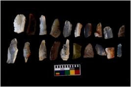 | Description / विवरण | There are n 20 Flake tool; There are multidirectional irregular scar pattern on them. few have blunt edges, Some of them are tapering at one end. |