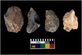 | Description / विवरण | There are n 4 utilized flake cores. Out of them three are made up of Chalcedony and one is made up of Chert. There are multi directional irregular scar pattern on them. One has sharp edge and three have blunted edges. |