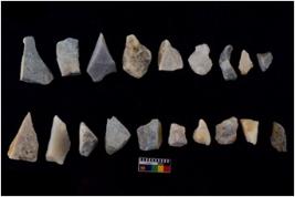| Description / विवरण | There are n 20 19 flakes; there are multidirectional irregular scar pattern on them; made of short flakes, few have pen pointed edge and few have tapering harp edges |