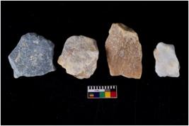 | Description / विवरण | There are n 4 flakes tool; there are large flakes with sides trimmed, Marks of secondary flaking are present on the both the faces. The dorsal is relatively flat |