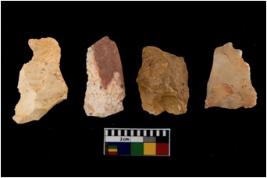 | Description / विवरण | There are n 4 cores. There are multi directional irregular scar pattern on both dorsal and ventral face of the cores. Some have blunted edges and some have round edges. |
