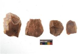 | Description / विवरण | There are n 4 of utilized worked cores and show irregular scar pattern on both dorsal and ventral side. Three have a broken tip. |