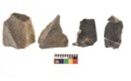 | Description / विवरण | There are n 4 utilized flakes. There are multi directional irregular scar pattern on both dorsal and ventral face of the flakes. Two have sharp edges and two have blunted edges. |