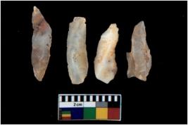 | Description / विवरण | There are n 4 utilized flake cores. There are multi directional irregular scar pattern on them. All of them are tapering at one end. |