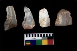 | Description / विवरण | There are n 4 utilized flake cores. There are multi directional irregular scar pattern on them. Two are tapering at one end and two have blunted edges. |