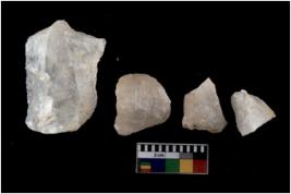 | Description / विवरण | Specimen of a cores with several broad fluted marks. The reverse bulb and platform can be seen. The flake scars are seen on all sides. |