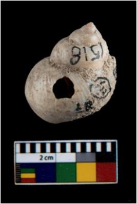 | Description / विवरण | A small conch shell with a transverse perforation on the side |