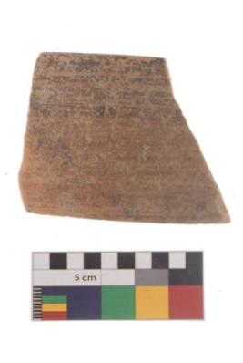 | Description / विवरण | Specimen of black on red ware with traces of decorative geometric Four parallel lines painting. |