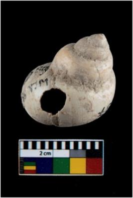| Description / विवरण | A small conch shell with a transverse perforation on the side |