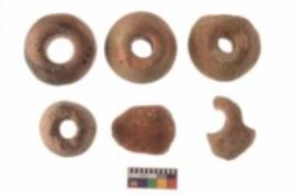 | Description / विवरण | Specimens of bicone shaped beads of Red ware. |