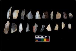 | Description / विवरण | Specimen of flakes tool with prominent flaking marks. It made up of a short flakes with sides trimmed. |