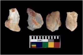 | Description / विवरण | There are n 4 utilized flake cores. There are multi directional irregular scar pattern on them. One has sharp edge and three have blunted edges. |