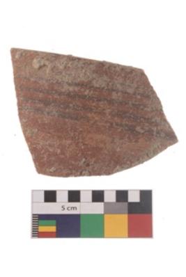 | Description / विवरण | Specimen of black on red ware with traces of decorative geometric Four parallel lines painting. |