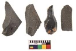 | Description / विवरण | There are n 4 utilized flakes. There are multi directional irregular scar pattern on both dorsal and ventral face of the flakes. Two are tapering at one end and two have sharp edges. |
