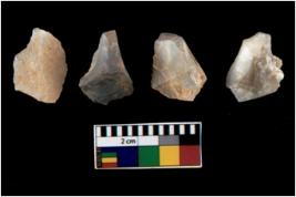 | Description / विवरण | There are n 4 utilized flake cores. Out of them three are made up of Chalcedony and one is made up of Chert. There are multi directional irregular scar pattern on them. Two have blunted edges and two have round edges. |