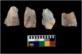 | Description / विवरण | There are n 4 utilized flake cores. There are multi directional irregular scar pattern on them. Two are tapering at one end and two have blunted edges. |